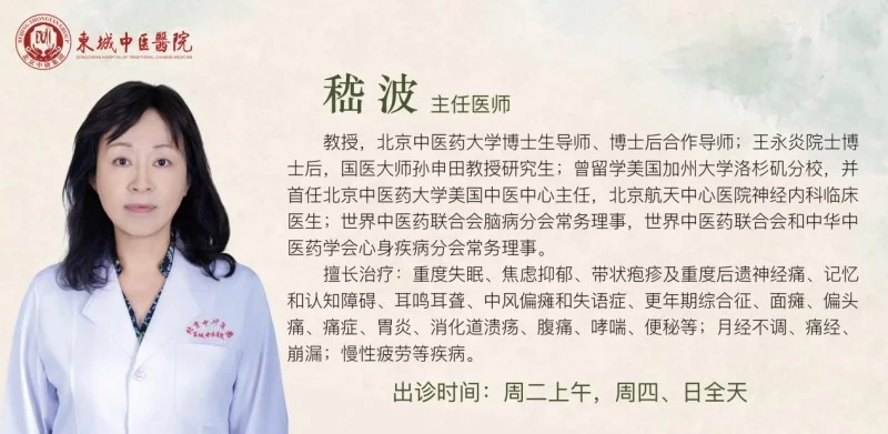 嵇波,主任医师,教授,东城中医医院特聘专家,出诊时间周二上午,周四、日全天。北京中医药大学博士生导师、博士后合作导师;王永炎院士博士后,国医大师孙申田教授研究生;曾留学美国加州大学洛杉矶分校,并首任北京中医药大学美国中医中心主任,北京航天中心医院神经内科临床医生;世界中医药联合会脑病分会常务理事,世界中医药联合会和中华中医药学会心身疾病分会常务理事。擅长治疗:重度失眠、焦虑抑郁、带状疱疹及重度后遗神经痛、记忆和认知障碍、耳鸣耳聋、中风偏瘫和失语症、更年期综合征、面瘫、偏头痛、痛症、胃炎、消化道溃疡、腹痛、哮喘、便秘等;月经不调、痛经、崩漏;慢性疲劳等疾病。